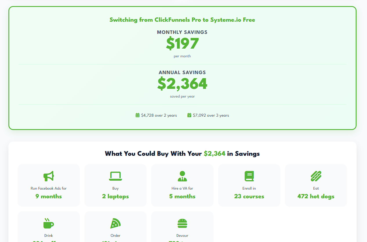 I was about to sign up for ClickFunnels at $197/month = $2,364 per year.